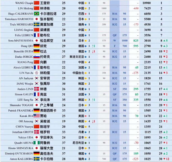 值得一提的是,为了备战全运会,国乒主力缺席了近期三站 WTT 赛事,这也给了外协选手追赶的机会。18 岁的日本小将松岛辉空拿下 1 冠 1 亚,排名飙升至世界第 8;德国华裔选手邱党凭借出色表现跻身前十,直接把原本在前十的向鹏挤了出去。